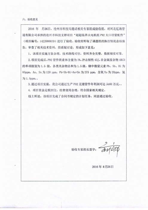 我公司自主研發(fā)的火力電站超超臨界P92大口徑管配件通過(guò)省專家組驗(yàn)收